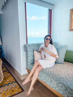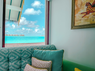 Our home was one the King Overwater villas and I fell in love with it. The interior design can be characterised as boho-chic. The colors and materials instantly lifted my mood. The private patio was were we spent most of our time and the over water net was my favorite place to hang out.